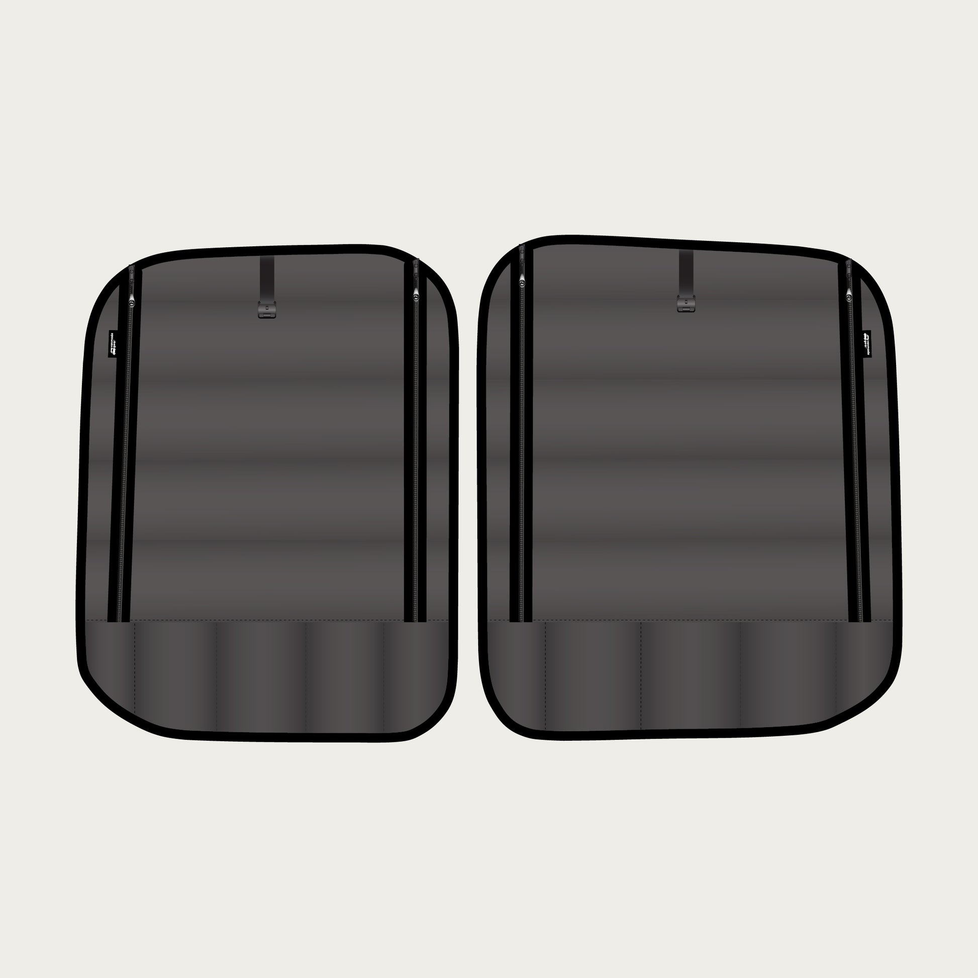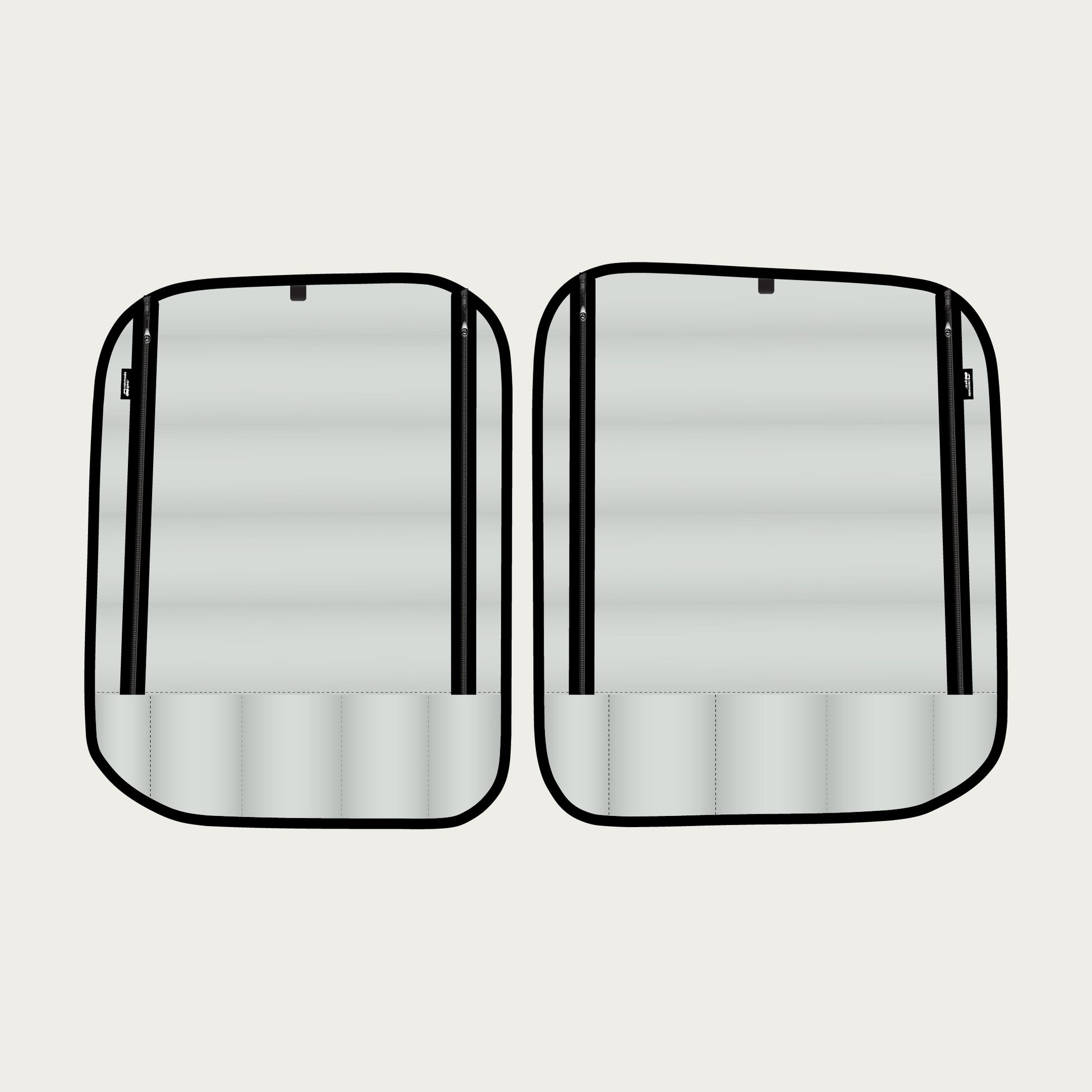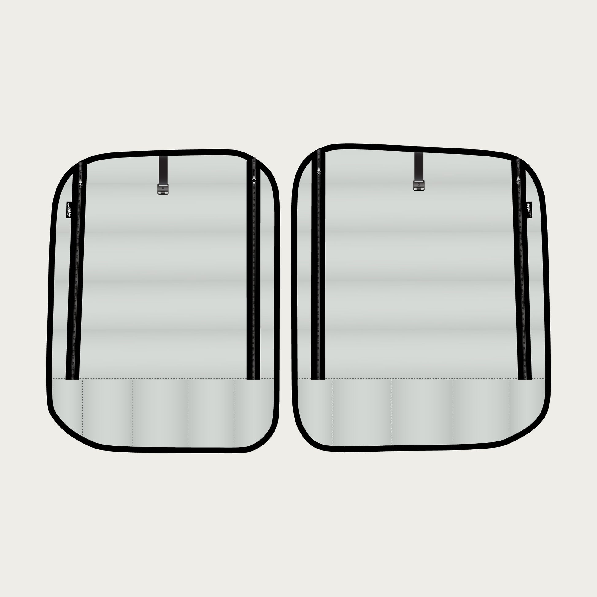 Our zippered rear door shades for the 2015+ Transit mid/high roof models attach magnetically to the window frame, creating the ultimate comfort and privacy for you on the road. This set features dual-side zip access, allowing for eye-level window views. Key Features: