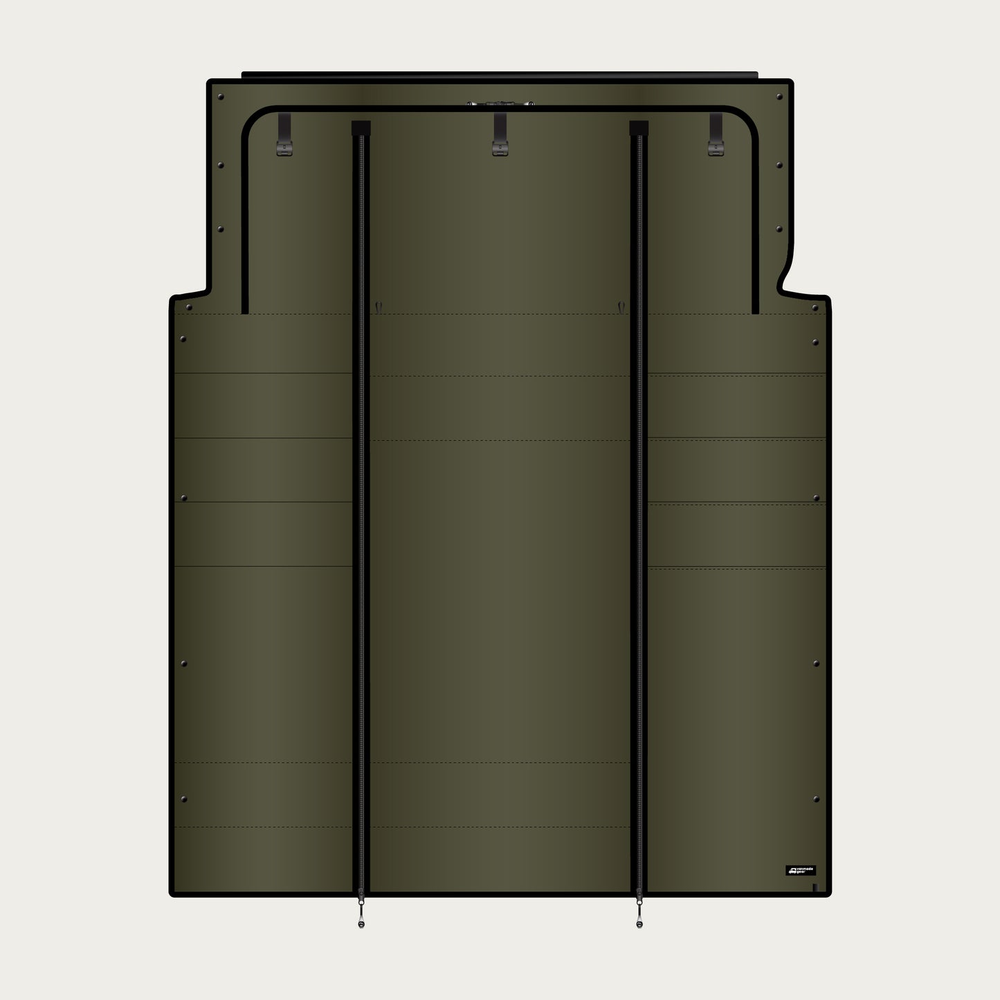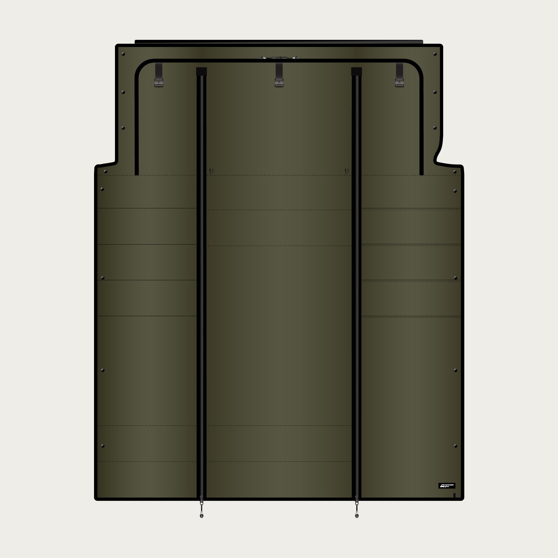 Double-zippered middle panel allows flexible cab access and full blackout coverage